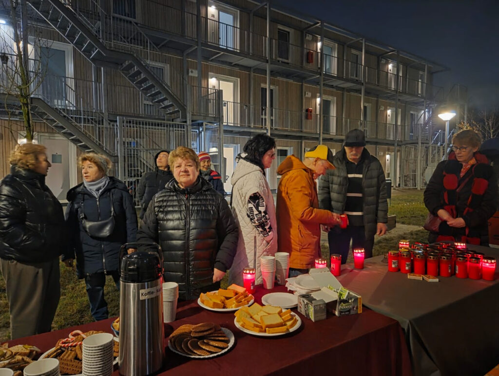 En alweer stonden we er. Op dinsdag 24 februari verzamelden vrijwilligers van de Stichting Vrede aan dit Huis zich samen met zo’n 20 Oekraïense bewoners van het complex aan de Diemerdreef rond een aangeklede picknicktafel. Voor het vierde jaar op rij stonden we schouder aan schouder verdrietig stil bij de invasie van Oekraïne door Rusland, nu 4 jaar geleden, elk met de eigen gedachten aan wie en wat vanaf die tijd werden verloren.