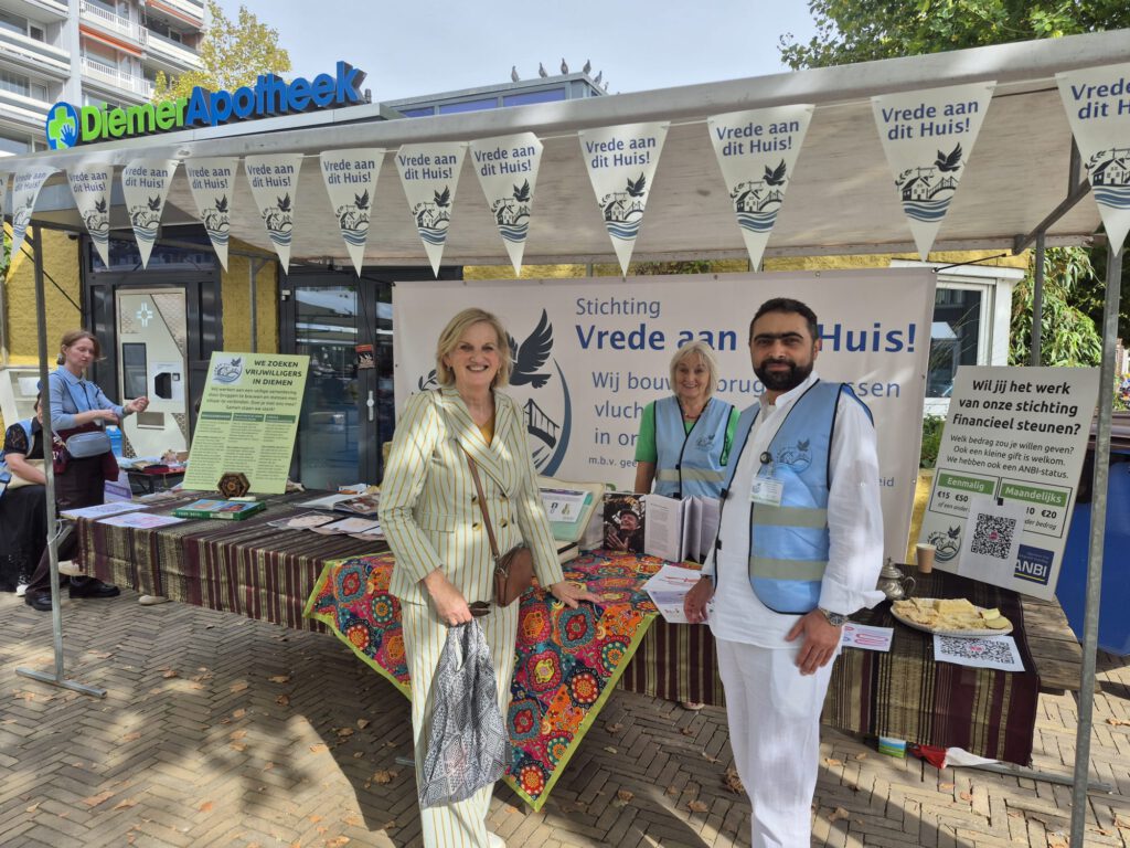 Met een grote groep vrijwilligers stonden we als Stichting ‘Vrede aan dit Huis’ op 6 september op de kramenmarkt van het jaarlijkse Diemer Festijn. De gemeente Diemen wil met alle organisaties die gericht zijn op ‘Sociaal’ , bouwen aan een Diemen waarin iedereen meetelt en mee kan doen. Voor ons was dit een uitgelezen kans om met dorpsbewoners in gesprek te gaan.